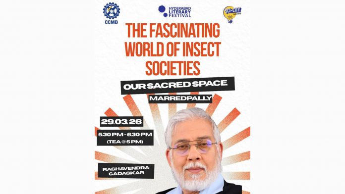 Join us for an engaging discussion on The fascinating world of insect societies with Raghavendra Gadagkar happening on Sunday, 29th March 2026 from 5:30 pm at Our Sacred Space, Marredpally, Secunderabad.